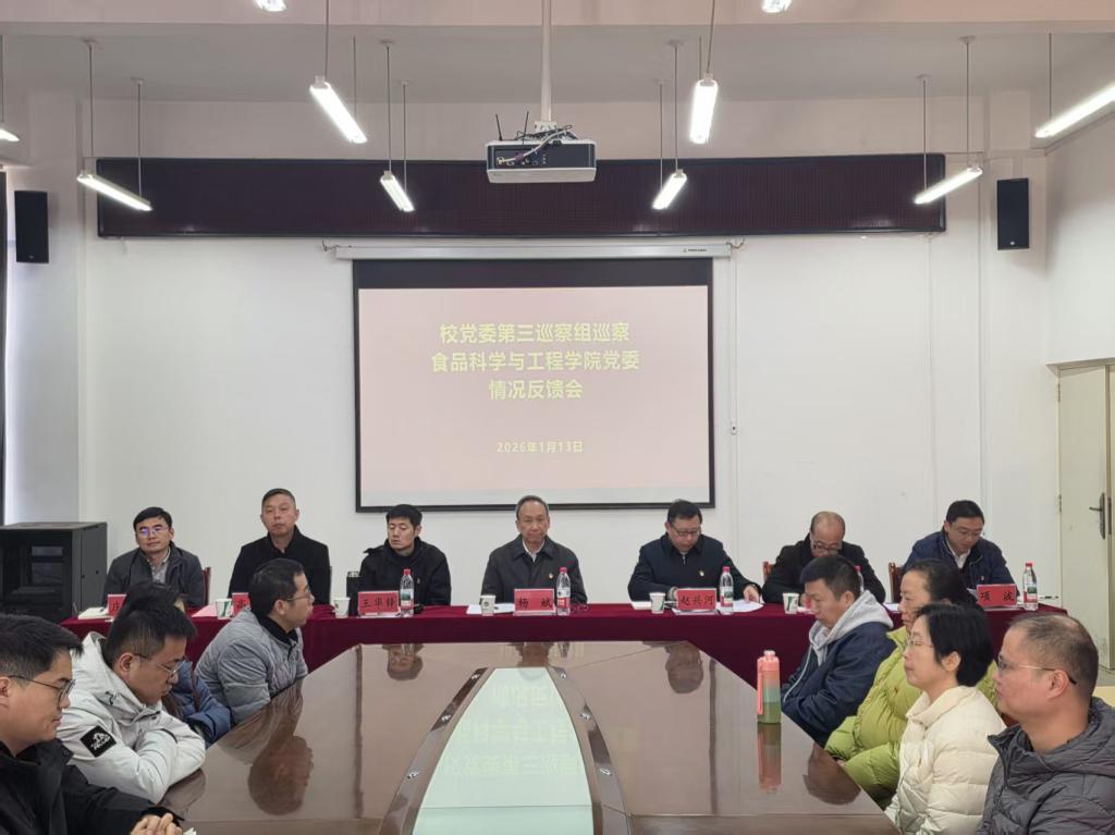 党委、食品科学与工程学院党委等6个基层党委反馈巡察情况。校党委副书记、校长杨斌,校党委副书记陈华仙、蔡金红,校党委常委、副校长蒋业华、潘学军、刘殿文分别出席会议并讲话。